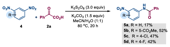 (2) 1,3-Dinitrobenzene substrates: The team also explored some amidation reactions of 1,3-dinitrobenzene and its derivatives, obtaining the corresponding N-(3-nitrophenyl)benzamide products in yields of 17-52%. This method provides a new route for the direct derivatization of polynitro compounds.